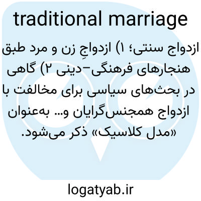 📌 ازدواج بین یک مرد و یک زن (که عمدتاً توسط مخالفان ازدواج همجنسگرایان استفاده میشود).