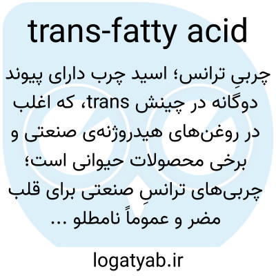 📌 اسید چرب غیراشباع که از هیدروژناسیون جزئی روغن نباتی تشکیل میشود و اعتقاد بر این است که سطح کلسترول خون را افزایش میدهد.