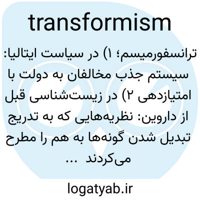 ترانسفورمیسم؛ ۱) در سیاست ایتالیا: سیستم جذب مخالفان به دولت با امتیازدهی ۲) در زیست‌شناسی قبل از داروین: نظریه‌هایی که به تدریج تبدیل شدن گونه‌ها به هم را مطرح می‌کردند (پیش‌تکاملی).