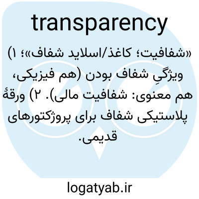 📌 چیزی شفاف، به ویژه یک تصویر، طرح یا مانند آن روی شیشه یا مادهای نیمهشفاف که با تابیدن نور از پشت، قابل مشاهده میشود.