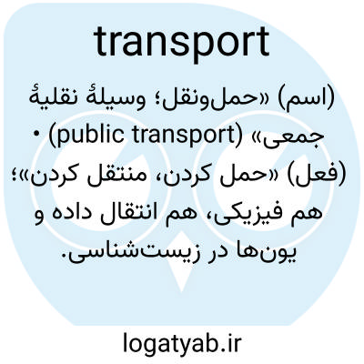 (اسم) «حمل‌ونقل؛ وسیلهٔ نقلیهٔ جمعی» (public transport) • (فعل) «حمل کردن، منتقل کردن»؛ هم فیزیکی، هم انتقال داده و یون‌ها در زیست‌شناسی.