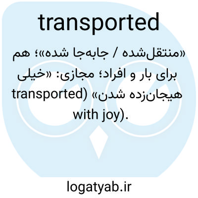 «منتقل‌شده / جابه‌جا شده»؛ هم برای بار و افراد؛ مجازی: «خیلی هیجان‌زده شدن» (transported with joy).