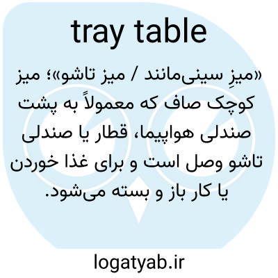 «میزِ سینی‌مانند / میز تاشو»؛ میز کوچک صاف که معمولاً به پشت صندلی هواپیما، قطار یا صندلی تاشو وصل است و برای غذا خوردن یا کار باز و بسته می‌شود.