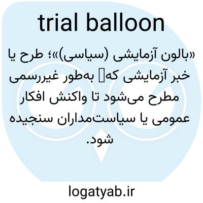 «بالون آزمایشی (سیاسی)»؛ طرح یا خبر آزمایشی که故 به‌طور غیررسمی مطرح می‌شود تا واکنش افکار عمومی یا سیاست‌مداران سنجیده شود.