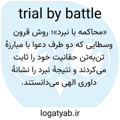 📌 روشی تاریخی برای محاکمه یک متهم یا حل و فصل اختلاف از طریق دعوای شخصی بین دو طرف درگیر یا در برخی شرایط، طرفداران مجاز آنها، در حضور قاضی. این روش پس از فتح نورمن‌ها به انگلستان معرفی و در سال ۱۸۱۹ لغو شد.