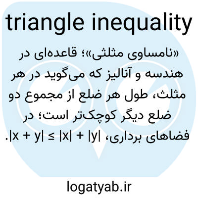 «نا‌مساوی مثلثی»؛ قاعده‌ای در هندسه و آنالیز که می‌گوید در هر مثلث، طول هر ضلع از مجموع دو ضلع دیگر کوچک‌تر است؛ در فضاهای برداری، |x + y| ≤ |x| + |y|.