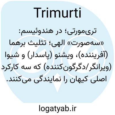 📌 (در هندوئیسم متأخر) تثلیثی متشکل از برهما خالق، ویشنو نگهدارنده و شیوا ویرانگر.