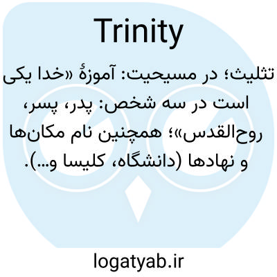 📌 همچنین تثلیث متبرک نامیده میشود. همچنین تثلیث مقدس نامیده میشود. تثلیث. اتحاد سه شخص (پدر، پسر و روح القدس) در یک الوهیت، یا شخصیت سهگانهی یک موجود برتر.