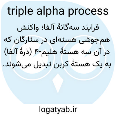📌 واکنش همجوشی هستهای که در آن سه هسته هلیوم (ذرات آلفا) با هم ترکیب میشوند و یک هسته کربن تشکیل میدهند و در نتیجه انرژی آزاد میکنند. دو هسته هلیوم با هم ترکیب میشوند و یک ایزوتوپ ناپایدار از بریلیم را تشکیل میدهند که در شرایط دما و فشار کافی با هسته هلیوم سوم ترکیب میشود و قبل از فروپاشی، کربن را تشکیل میدهد. فرآیندهای آلفای سهگانه در ستارگانی رخ میدهند که در آنها مقادیر زیادی هلیوم به عنوان محصول واکنشهای زنجیره پروتون-پروتون و چرخه کربن انباشته شده است.