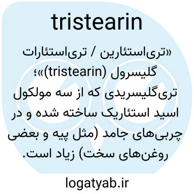 «تری‌استئارین / تری‌استئارات گلیسرول (tristearin)»؛ تری‌گلیسریدی که از سه مولکول اسید استئاریک ساخته شده و در چربی‌های جامد (مثل پیه و بعضی روغن‌های سخت) زیاد است.