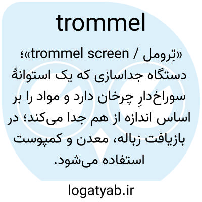 📌 یک سرند دوار، استوانهای یا مخروطی برای دستهبندی سنگ معدن، زغالسنگ، شن و غیره، بر اساس اندازه.