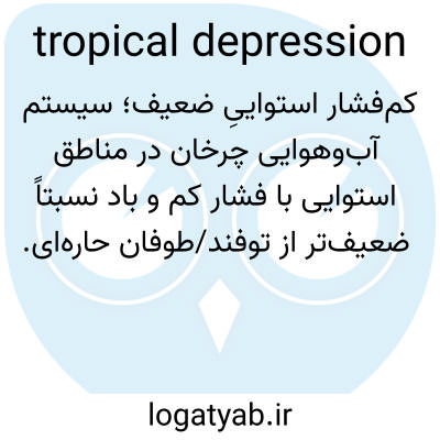 📌 یک سامانه کمفشار جوی که از مناطق گرمسیری سرچشمه میگیرد، به طور خاص، یک طوفان گرمسیری که در آن حداکثر سرعت باد پایدار 38 مایل در ساعت (62 کیلومتر در ساعت) یا کمتر است.