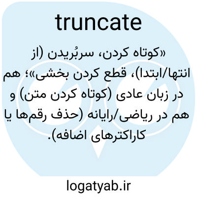 «کوتاه کردن، سربُریدن (از انتها/ابتدا)، قطع کردن بخشی»؛ هم در زبان عادی (کوتاه کردن متن) و هم در ریاضی/رایانه (حذف رقم‌ها یا کاراکترهای اضافه).
