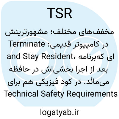 مخفف‌های مختلف؛ مشهورترینش در کامپیوتر قدیمی: Terminate and Stay Resident، برنامه‌ای که بعد از اجرا بخشی‌اش در حافظه می‌مانْد. در کود فیزیکی هم برای Technical Safety Requirements استفاده می‌شود.