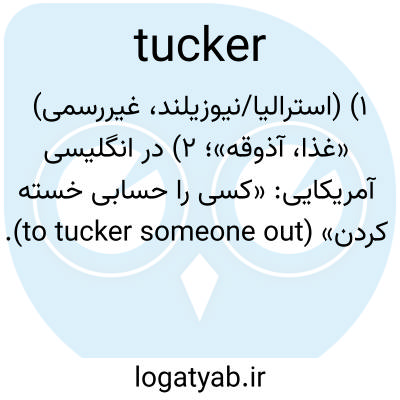 ۱) (استرالیا/نیوزیلند، غیررسمی) «غذا، آذوقه»؛ ۲) در انگلیسی آمریکایی: «کسی را حسابی خسته کردن» (to tucker someone out).
