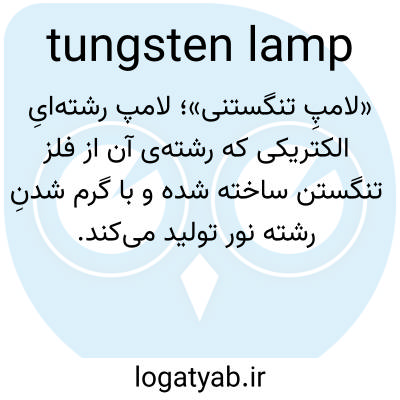 «لامپِ تنگستنی»؛ لامپ رشته‌ایِ الکتریکی که رشته‌ی آن از فلز تنگستن ساخته شده و با گرم شدنِ رشته نور تولید می‌کند.