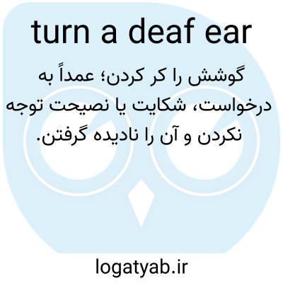 📌 از گوش دادن امتناع کردن، مانند این ضربالمثل که «میتوانی تمام روز التماس کنی اما او به همه گوش نمیدهد». این اصطلاح به نیمه اول دهه ۱۴۰۰ میلادی برمیگردد و در بیشتر مجموعههای ضربالمثل از سال ۱۵۴۶ به بعد وجود داشته است. همچنین به عبارت «افتادن روی گوشهای ناشنوا» مراجعه کنید.
