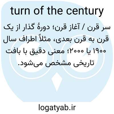📌 آغاز یا پایان یک قرن خاص، همانطور که در That idiom آمده است، از آغاز قرن، یعنی حدود سال ۱۹۰۰ آغاز می‌شود. این عبارت اولین بار در سال ۱۹۲۶ ثبت شد.
