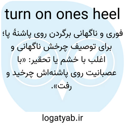 📌 رفتن، مانند وقتی که از خواهرش پرسیدم، روی پاشنه پا چرخید و رفت. این اصطلاح به تغییر ناگهانی چهره، شبیه به یک گام نظامی اشاره دارد، اما در اینجا معمولاً به معنای رفتن ناگهانی است. این اصطلاح اولین بار در سال ۱۷۵۱ ثبت شده است.