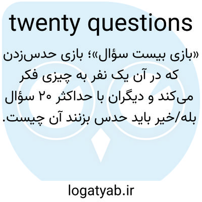 📌 یک بازی شفاهی که در آن یک بازیکن کلمه یا شیئی را انتخاب می‌کند که سایر بازیکنان سعی می‌کنند با پرسیدن حداکثر بیست سؤال که می‌توان با بله یا خیر به آنها پاسخ داد، هویت آن را حدس بزنند.