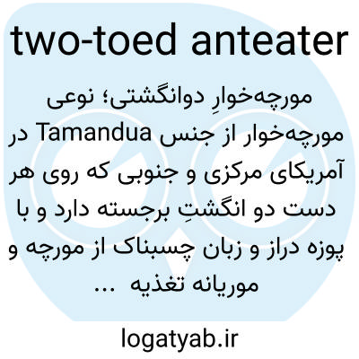 مورچه‌خوارِ دو‌انگشتی؛ نوعی مورچه‌خوار از جنس Tamandua در آمریکای مرکزی و جنوبی که روی هر دست دو انگشتِ برجسته دارد و با پوزه دراز و زبان چسبناک از مورچه و موریانه تغذیه می‌کند.