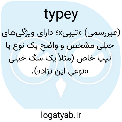 (غیررسمی) «تیپی»؛ دارای ویژگی‌های خیلی مشخص و واضحِ یک نوع یا تیپ خاص (مثلاً یک سگ خیلی «نوعیِ این نژاد»).