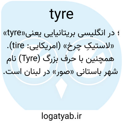 «tyre»؛ در انگلیسی بریتانیایی یعنی «لاستیکِ چرخ» (امریکایی: tire). همچنین با حرف بزرگ (Tyre) نام شهر باستانی «صور» در لبنان است.