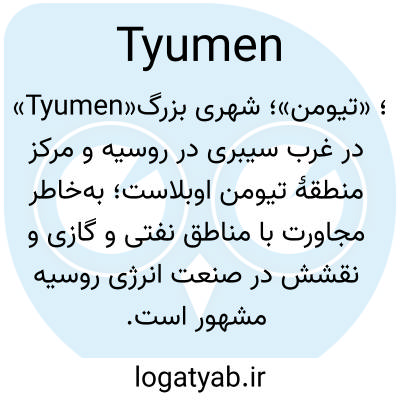 «Tyumen»؛ «تیومن»؛ شهری بزرگ در غرب سیبری در روسیه و مرکز منطقۀ تیومن اوبلاست؛ به‌خاطر مجاورت با مناطق نفتی و گازی و نقشش در صنعت انرژی روسیه مشهور است.