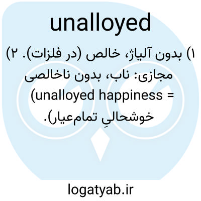 ۱) بدون آلیاژ، خالص (در فلزات). ۲) مجازی: ناب، بدون ناخالصی (unalloyed happiness = خوشحالیِ تمام‌عیار).