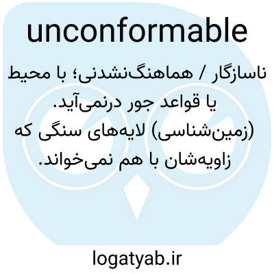 ناسازگار / هماهنگ‌نشدنی؛ با محیط یا قواعد جور درنمی‌آید. (زمین‌شناسی) لایه‌های سنگی که زاویه‌شان با هم نمی‌خواند.