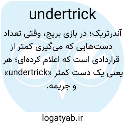 آندر‌تریک؛ در بازی بریج، وقتی تعداد دست‌هایی که می‌گیری کمتر از قراردادی است که اعلام کرده‌ای؛ هر «undertrick» یعنی یک دست کمتر و جریمه.