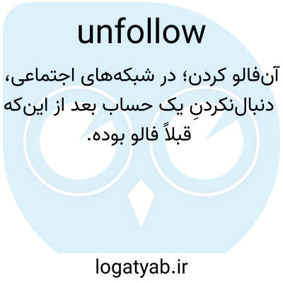 آن‌فالو کردن؛ در شبکه‌های اجتماعی، دنبال‌نکردنِ یک حساب بعد از این‌که قبلاً فالو بوده.