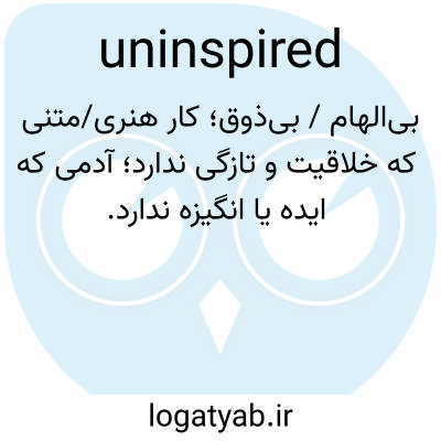 بی‌الهام / بی‌ذوق؛ کار هنری/متنی که خلاقیت و تازگی ندارد؛ آدمی که ایده یا انگیزه ندارد.
