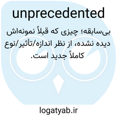 بی‌سابقه؛ چیزی که قبلاً نمونه‌اش دیده نشده، از نظر اندازه/تأثیر/نوع کاملاً جدید است.