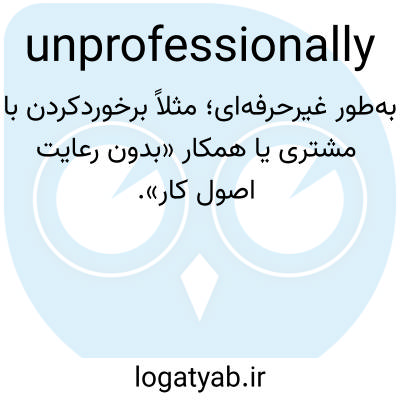 📌 به شیوه‌ای غیرحرفه‌ای یا نامناسب برای یک فرد حرفه‌ای؛ به شیوه‌ای که نشان‌دهنده رفتار، مهارت و غیره پایین‌تر از حد استاندارد از سوی یک کارگر باشد.