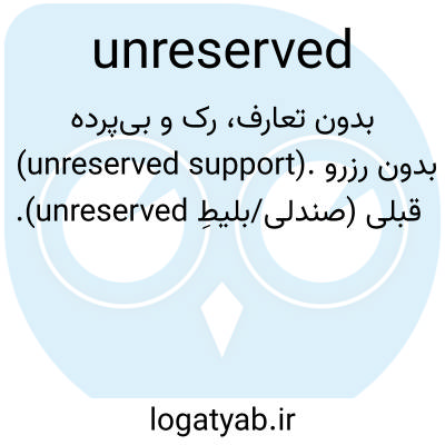 بدون تعارف، رک و بی‌پرده (unreserved support). بدون رزرو قبلی (صندلی/بلیطِ unreserved).