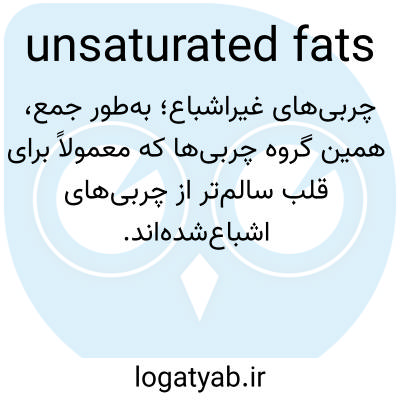 📌 نوعی چربی که در آن یک یا چند جفت الکترون در اتمهای تشکیلدهنده مولکول چربی، با یک جفت الکترون از اتم دیگر پیوند تشکیل میدهند (پیوند دوگانه). دو نوع چربی غیراشباع وجود دارد: تک غیراشباع، که حاوی یک پیوند دوگانه هستند؛ و چند غیراشباع، که حاوی دو یا چند پیوند دوگانه هستند. چربیهای تک غیراشباع در بادام زمینی، کره بادام زمینی، زیتون و آووکادو یافت میشوند. چربیهای چند غیراشباع، که معمولاً در دمای اتاق مایع هستند، در روغنهایی مانند ذرت، آفتابگردان و سویا یافت میشوند.