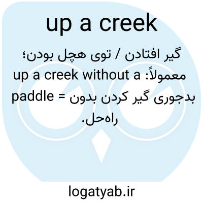 📌 همچنین، در نهر کثیف؛ در بالای نهر (بدون پارو). در دردسر، در یک مخمصه جدی، مانند «اگر چک امروز نرسد، من در بالای نهر هستم»، یا «ماشین روشن نمی‌شد، پس من بدون پارو در بالای نهر بودم». این اصطلاح عامیانه، تصویر یک قایق‌ران سرگردان را تداعی می‌کند که هیچ راهی برای حرکت دادن (پارو زدن) قایق ندارد. رئیس جمهور هری اس. ترومن اولین اصطلاح را در نامه‌ای در سال ۱۹۱۸ به کار برد. نوع اول مبتذل تلقی می‌شود.