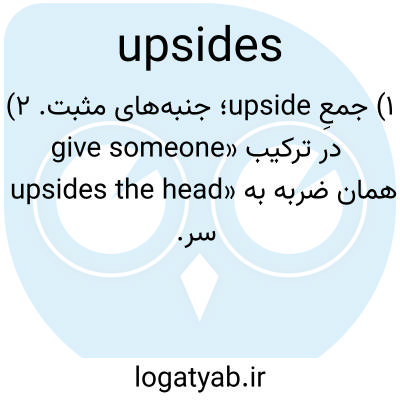 ۱) جمعِ upside؛ جنبه‌های مثبت. ۲) در ترکیب «give someone upsides the head» همان ضربه به سر.
