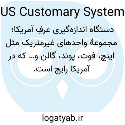 📌 مخفف عبارت United States Customary System. سیستم اصلی اوزان و مقادیر مورد استفاده در ایالات متحده و چند کشور دیگر. این سیستم بر اساس یارد به عنوان واحد طول، پوند به عنوان واحد وزن، گالن به عنوان واحد حجم مایع و بوشل به عنوان واحد حجم خشک است.
