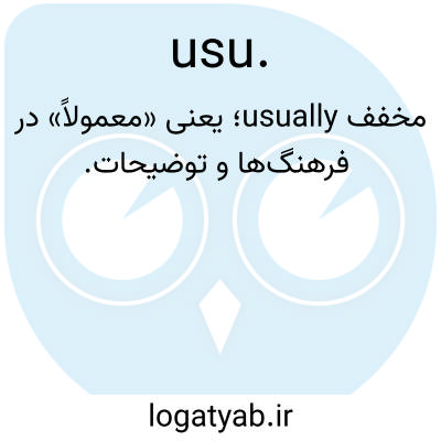 مخفف usually؛ یعنی «معمولاً» در فرهنگ‌ها و توضیحات.
