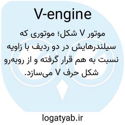 📌 موتور احتراق داخلی که دو ردیف سیلندر در مقابل هم دارد که به گونه‌ای شیب‌دار شده‌اند که زاویه‌ای V شکل تشکیل می‌دهند.