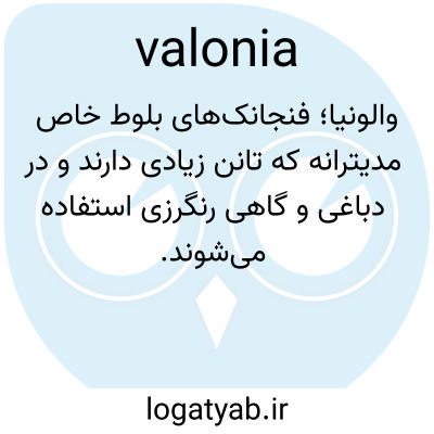 والونیا، va-lō′ni-a، اسم. فنجان بزرگ بلوطی گونهای از بلوط که در اطراف شام میروید و در دباغی استفاده میشود.