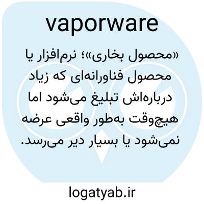 📌 اصطلاح عامیانه کامپیوتری، محصولی، به ویژه نرمافزاری، که در حالی که هنوز در حال توسعه است، تبلیغ یا به بازار عرضه میشود و ممکن است هرگز تولید نشود.