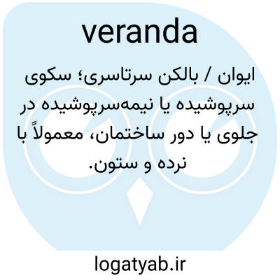 📌 عمدتاً در جنوب میدلند و جنوب ایالات متحده، همچنین به عنوان ایوان. ایوان بزرگ و باز، معمولاً مسقف و تا حدی محصور، مثلاً با نرده، که اغلب در جلو و کناره‌های خانه امتداد دارد؛ راهرو.
