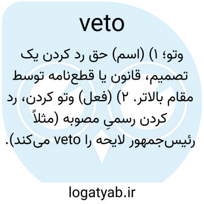 📌 قدرت یا حقی که به یک قوه از حکومت واگذار شده است تا تصمیمات، مصوبات و غیره قوه دیگر را لغو یا به تعویق بیندازد، به ویژه حق رئیس جمهور، فرماندار یا سایر مدیران ارشد اجرایی برای رد لوایح مصوب قوه مقننه.