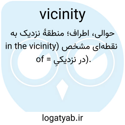 📌 ناحیه یا منطقه نزدیک یا اطراف یک مکان؛ ناحیه اطراف؛ محله