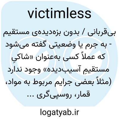 📌 (در یک جرم یا عمل خلاف) قربانی نداشتن؛ آسیب مستقیمی به هیچ شخص خاصی وارد نکردن