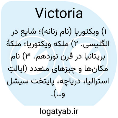 ۱) ویکتوریا (نام زنانه)؛ شایع در انگلیسی. ۲) ملکه ویکتوریا؛ ملکهٔ بریتانیا در قرن نوزدهم. ۳) نام مکان‌ها و چیزهای متعدد (ایالتِ استرالیا، دریاچه، پایتخت سیشل و…).