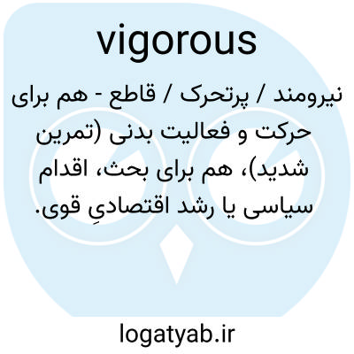 نیرومند / پرتحرک / قاطع - هم برای حرکت و فعالیت بدنی (تمرین شدید)، هم برای بحث، اقدام سیاسی یا رشد اقتصادیِ قوی.